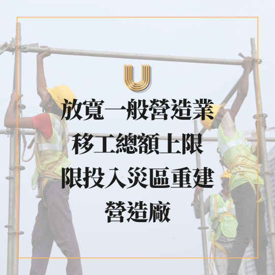 放寬一般營造業移工1.5萬總額 僅限投入丹娜絲災後復原營造廠