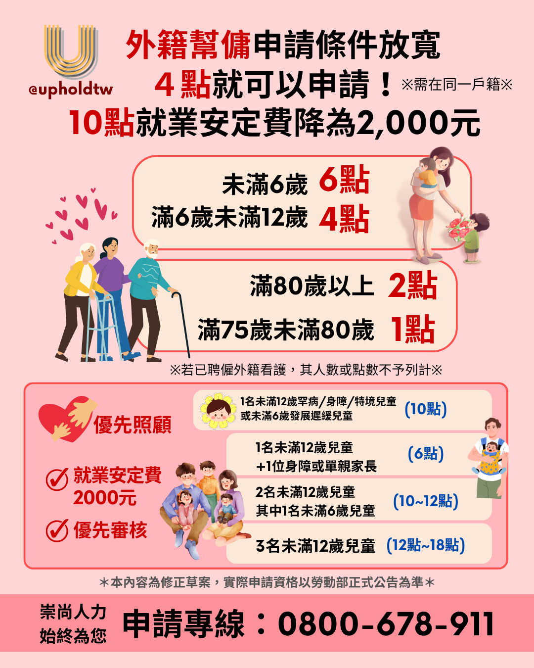 2026外籍家庭幫傭申請最新政策|滿10點數就業安定費2000元