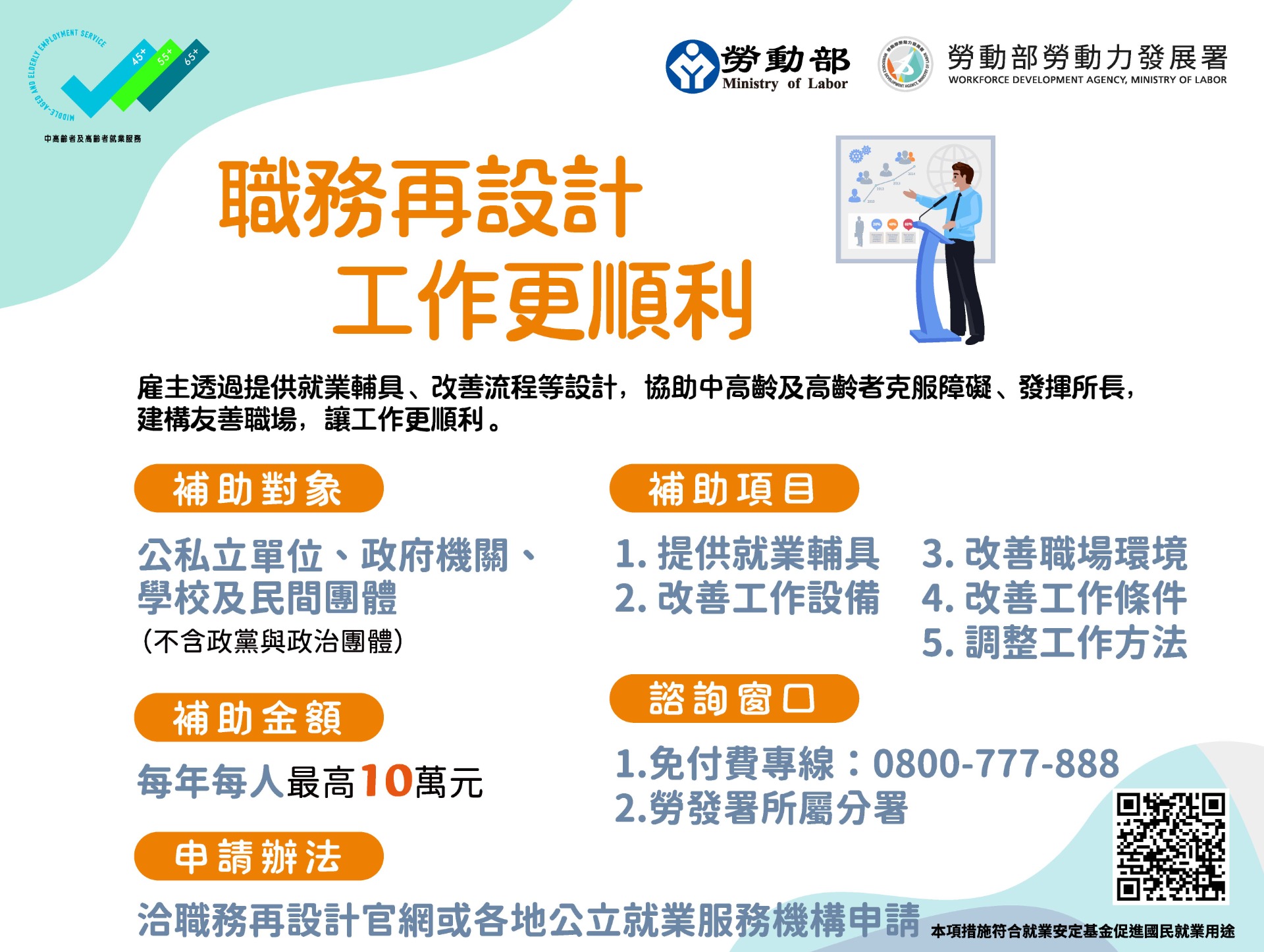 促進中高齡就業,勞動部勞動力發展署推動《 中高齡者及高齡者企業輔導服務》,提供多面向諮詢輔導,近日也完成旅宿業人力運用指引,11月起將舉行說明會,協助企業聘僱中高齡者。