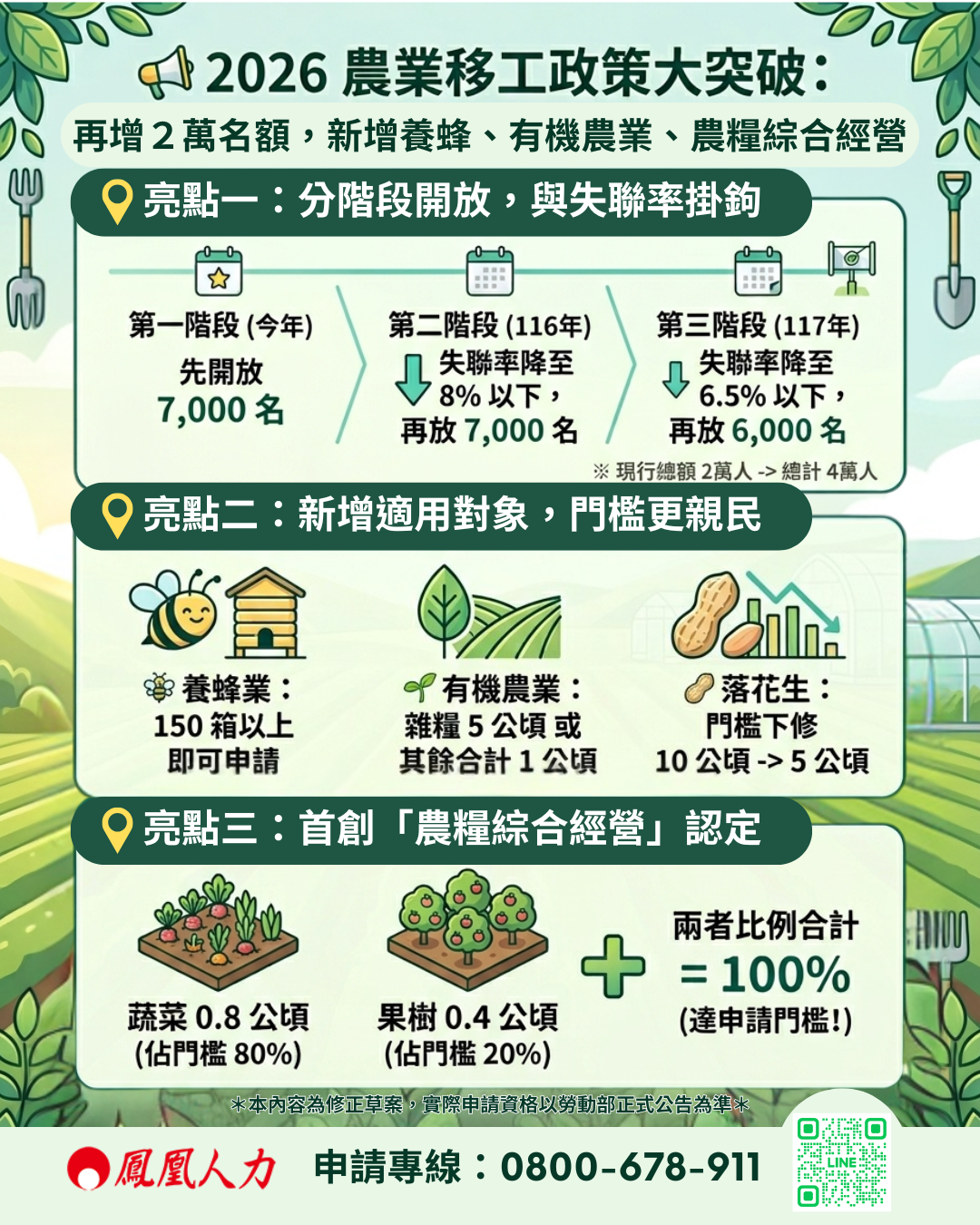 延伸閱讀:2026農業移工將分階段再增加2萬人 並新增養蜂、有機農業、農糧綜合經營