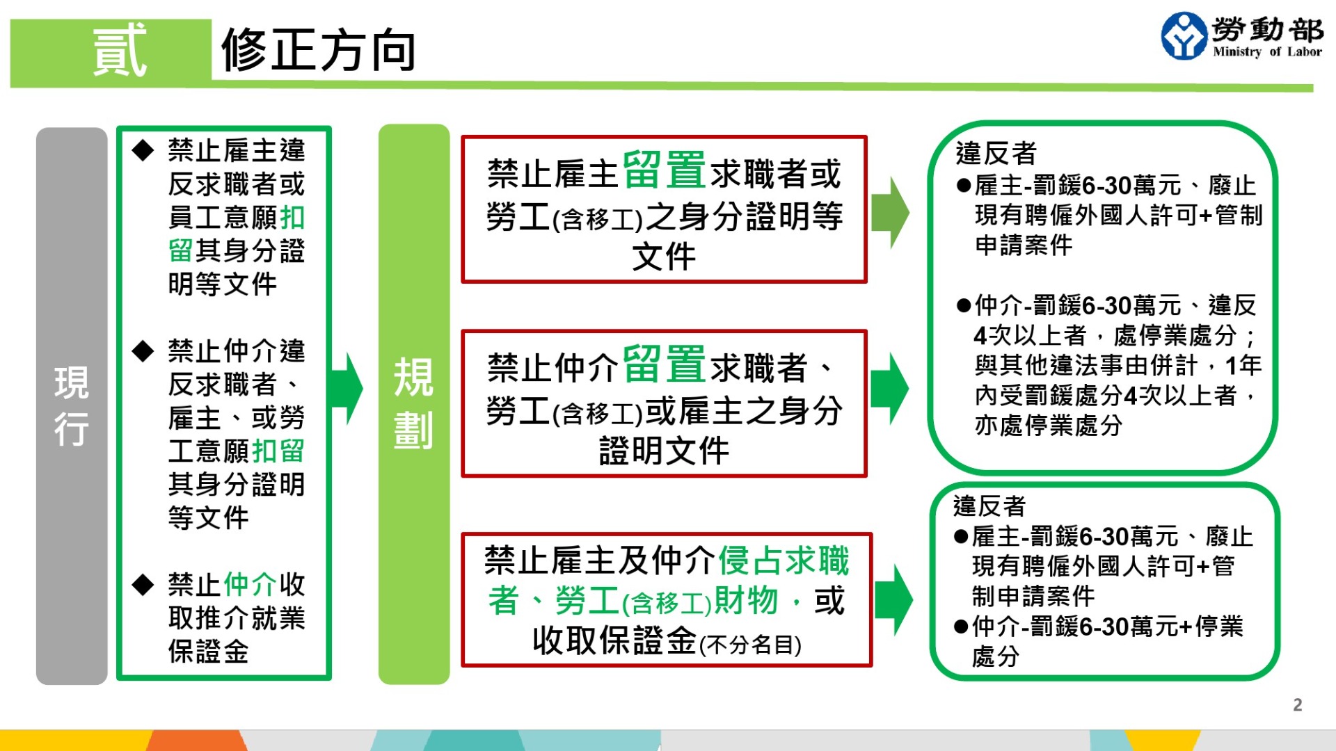 此次修法即是為了讓臺灣制度接軌ILO公平招募倡議與強迫勞動11項指標,降低企業供應鏈風險。