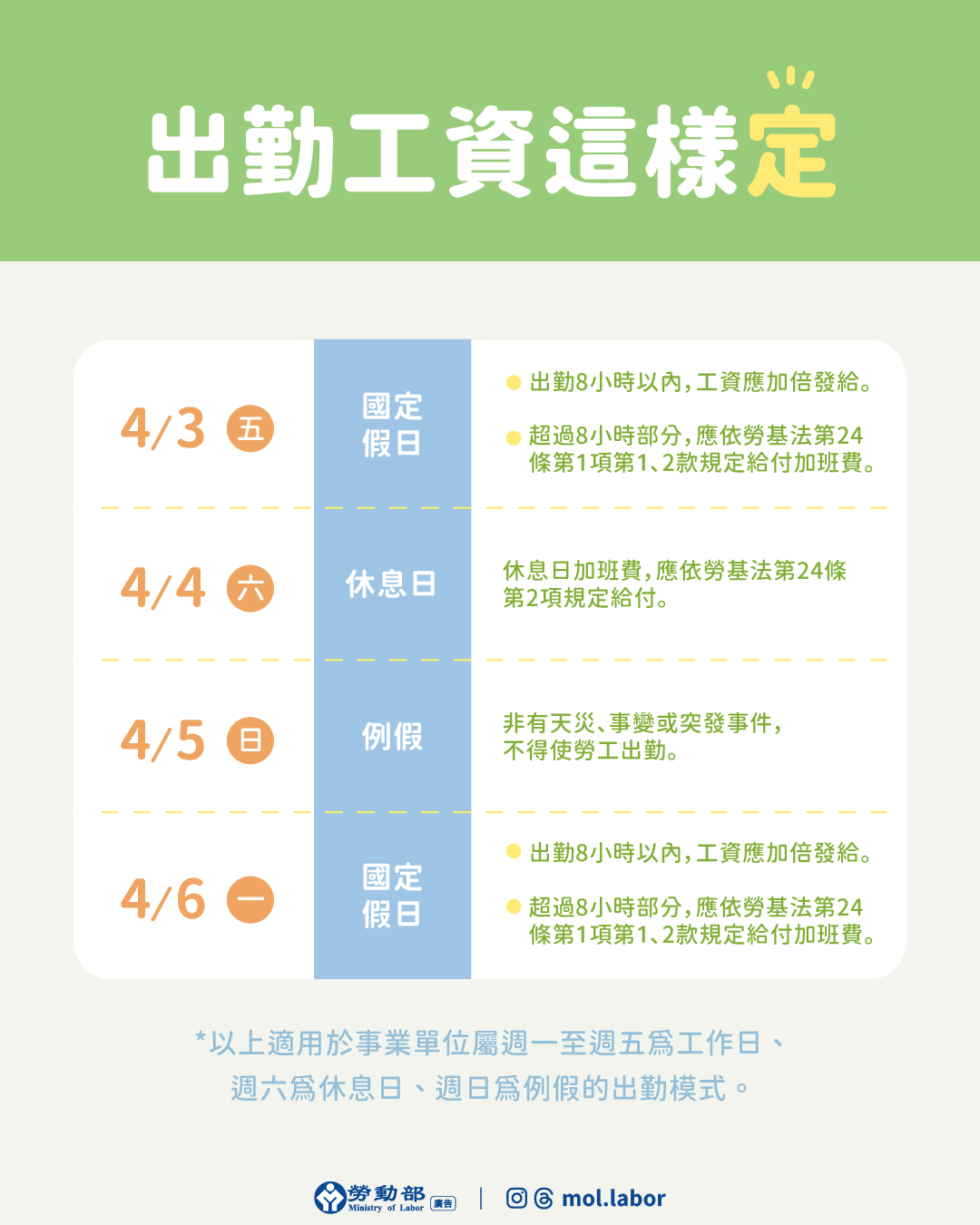 2026兒童節、清明節出勤怎麼算?國定假日加班費與補假規定一次看懂